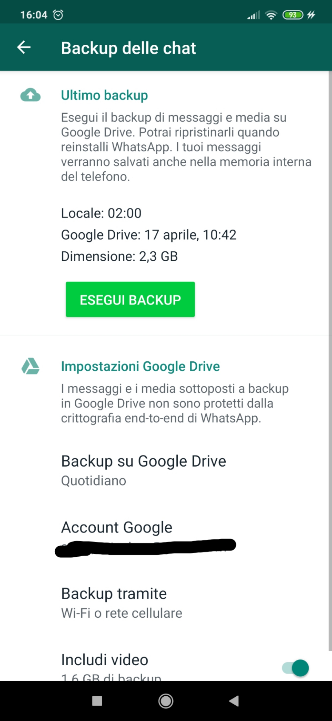 backup whatsapp su google drive non automatico community account google