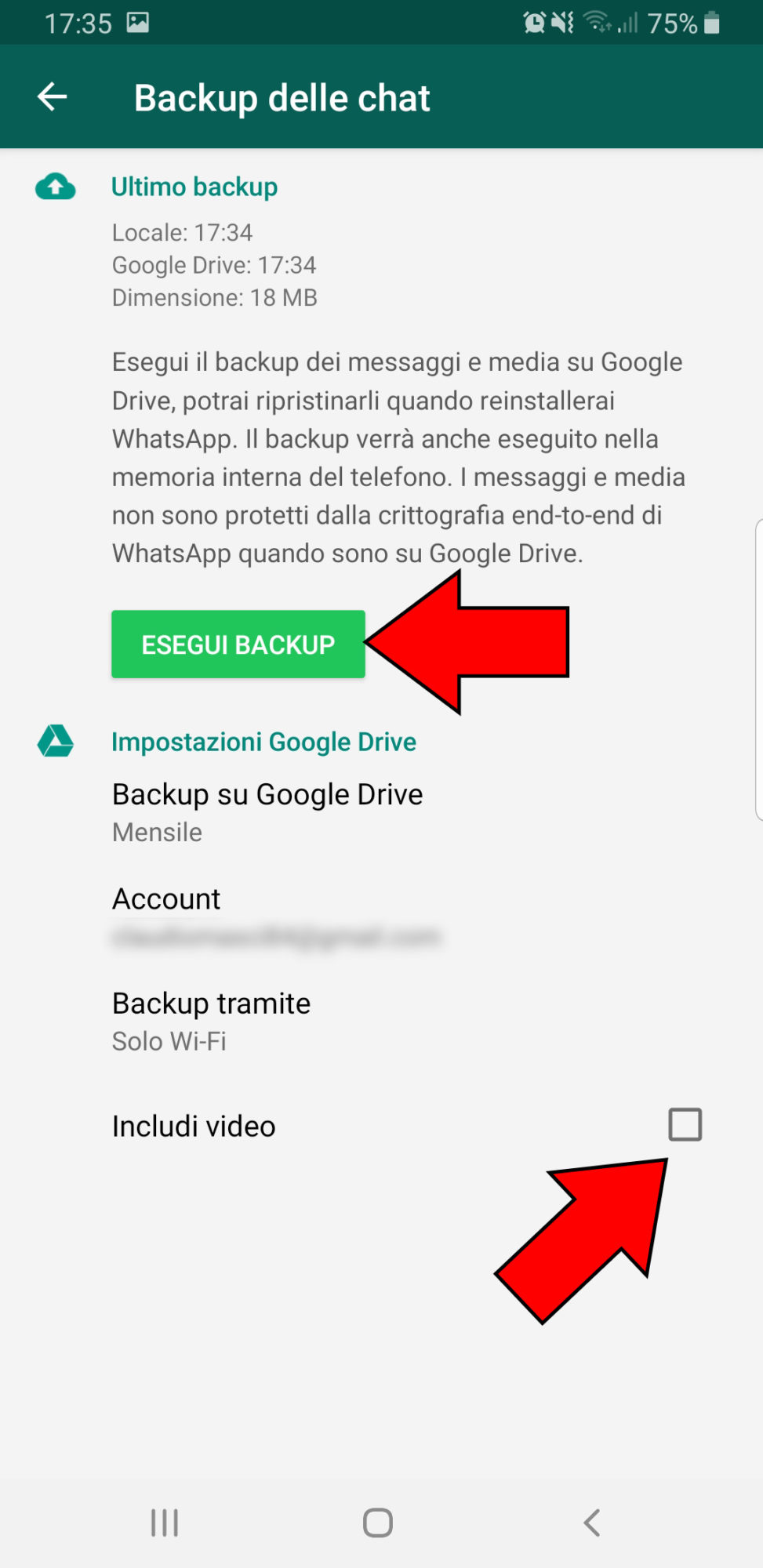 come fare il backup di whatsapp claudiomasci