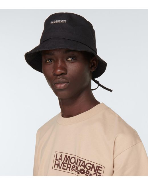 jacquemus bob gadjo logo cotton bucket hat in natural for men lyst