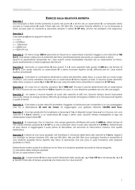 esercizi sulla relativita ristretta