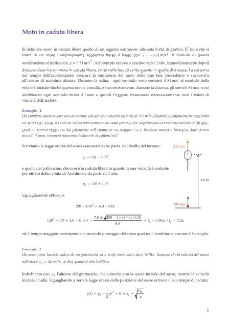 si definisce moto in caduta libera quello di un francescopoli net