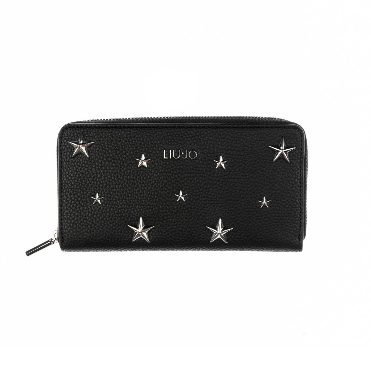 portafoglio donna liu jo zip around xl in ecopelle nero con microborchie