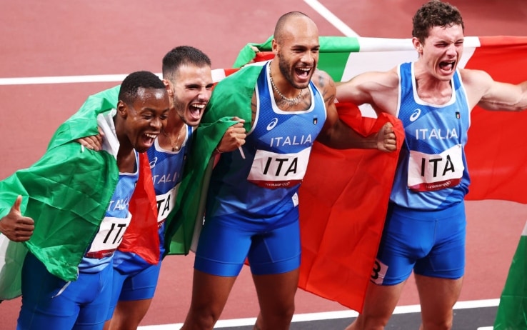 staffetta 4x100 italia medaglia d oro alle olimpiadi con jacobs patta desalu e tortu la repubblica
